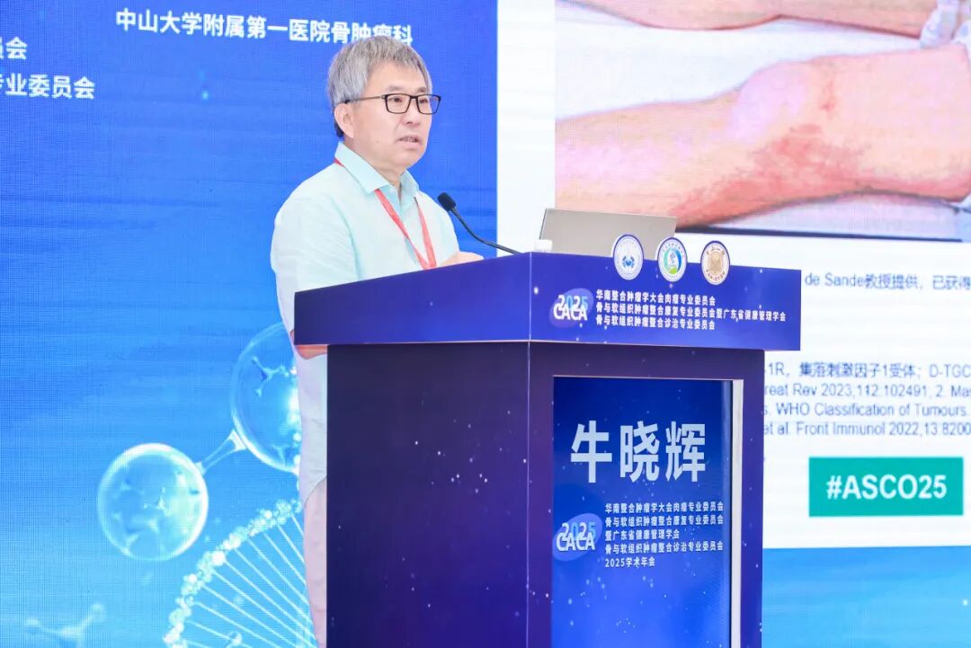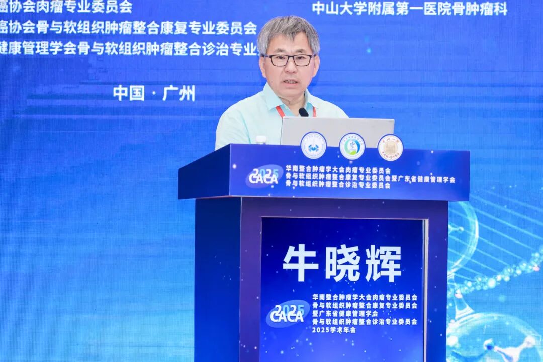随后,广东省健康管理学会骨与软组织肿瘤整合诊治专业委员会主任委员、中山大学附属第一医院尹军强教授带来《肉瘤复发、转移的早期监测》的精彩报告,尹军强教授从临床实践出发,深入剖析肉瘤复发与转移的监测难点与应对策略。两位教授的报告不仅为大会奠定了学术基调,也为后续交流提供了方向性指引。