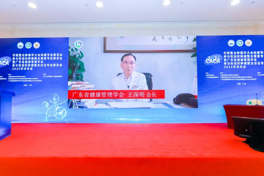 7月19日下午,大会进入分会场环节,肉瘤专业委员会、骨与软组织肿瘤整合康复专业委员会分会场暨广东省健康管理学会骨与软组织肿瘤整合诊治专业委员会2025学术年会热烈召开。首先广东省健康管理学会王深明会长发来视频表达对专委会工作的肯定以及提出未来展望,并祝大会圆满成功。