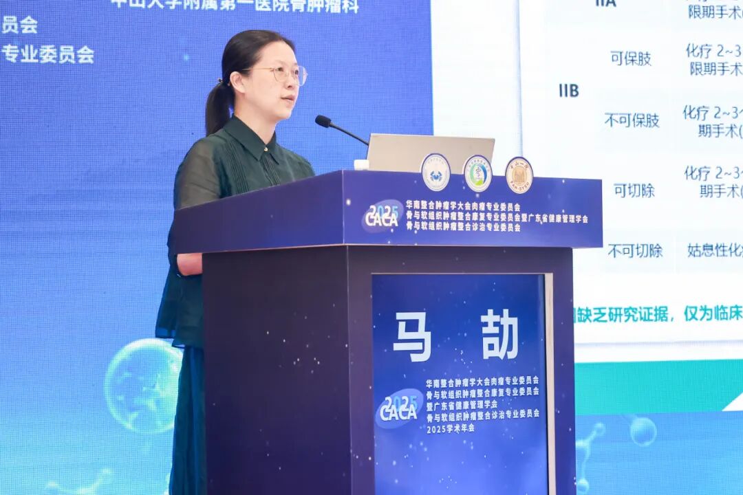 在肉瘤整合诊治环节,肖建如教授以《脊柱软骨肉瘤治疗进展》为题,详细介绍了脊柱软骨肉瘤的病理特点、临床表现,并展示了一系列复杂脊柱软骨肉瘤整块切除的精确外科治疗案例。张星教授分享了《肉瘤的靶向免疫治疗》,深入讨论了肉瘤免疫治疗的最新观点和策略。陈静教授探了《腹膜后肉瘤的放疗原则与探索》,分享了关键的临床研究数据;马劼教授阐述了《骨肉瘤常见分型治疗及思考》,提出了新型骨肉瘤分型对个体化治疗策略和预后改善的重要性,为肉瘤的综合诊治提供了宝贵的参考。